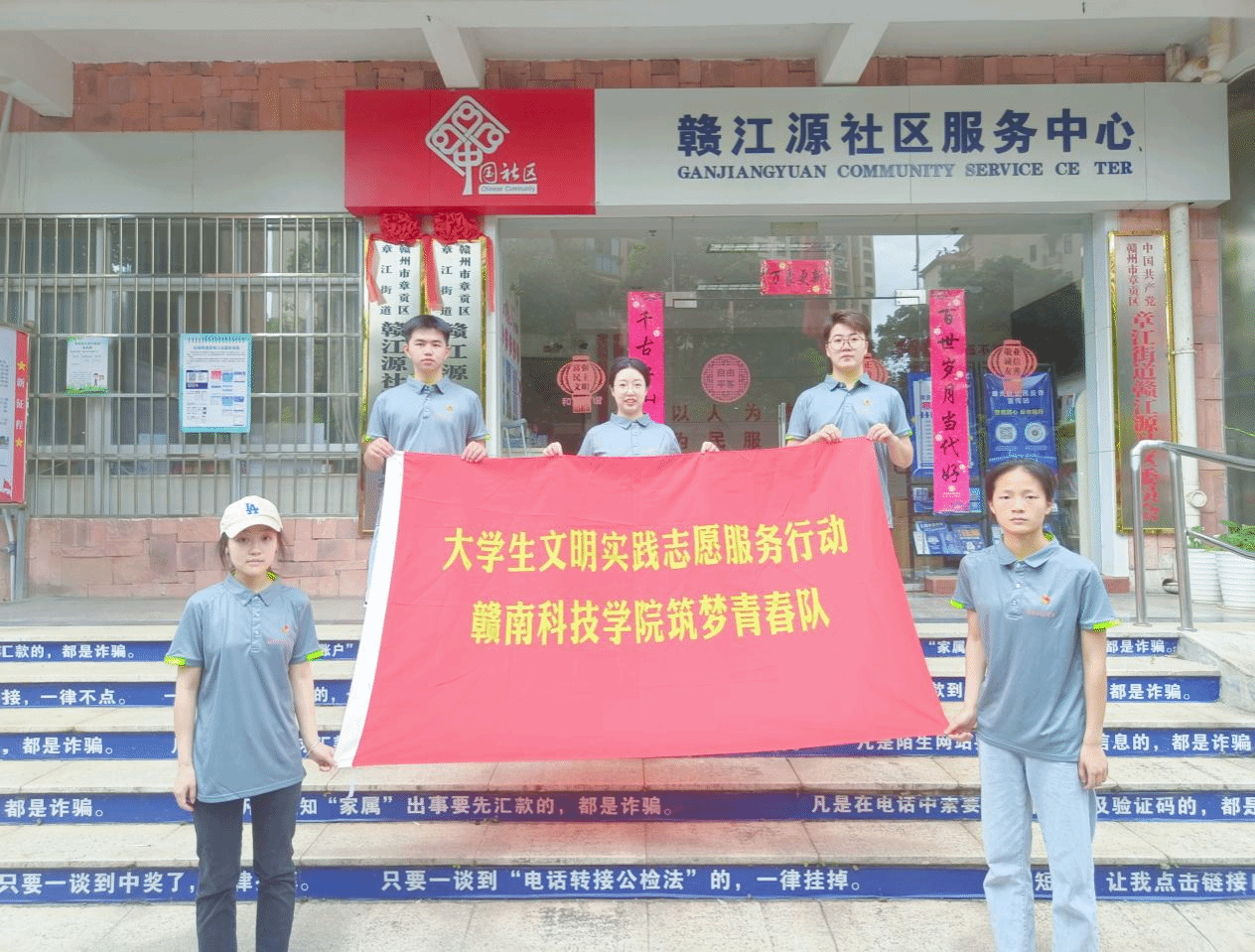 本网讯:为进一步深化对习近平新时代中国特色社会主义思想的学思践悟,引导青年大学生投身新时代火热实践,7月3日至7月7日,信息工程系辅导员李曼如带领4名志愿者组成“筑梦青春队”,深入赣江源社区新时代文明实践站,开展大学生暑期文明实践活动。