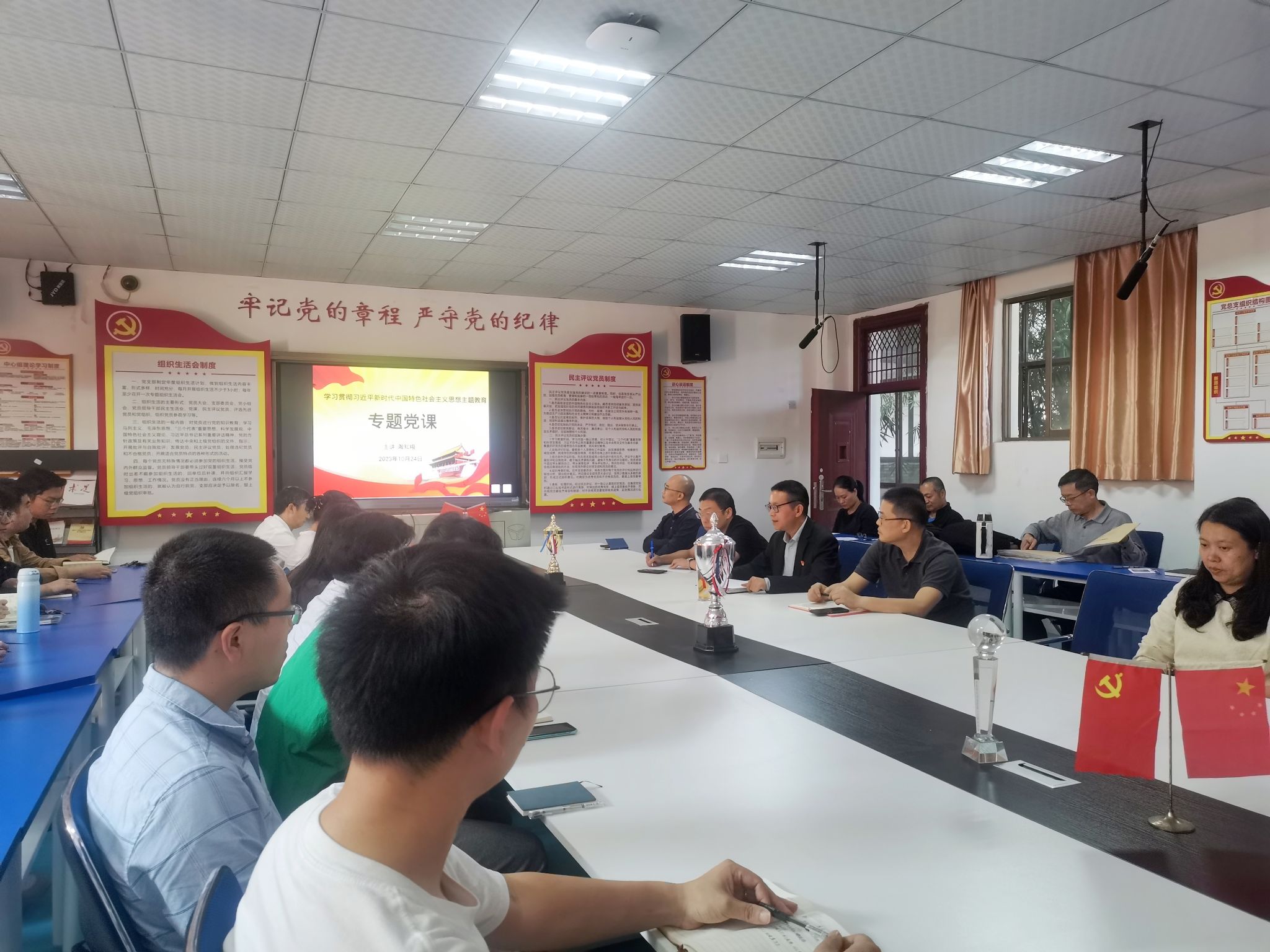 本网讯:为深入开展学习贯彻习近平新时代中国特色社会主义思想主题教育,坚持学思用贯通,知信行统一,把习近平新时代中国特色社会主义思想转化为坚定理想、锤炼党性和指导实践、推动工作的强大力量,10月24日下午,学校过渡期管委会委员陶知翔为信息系全体教工党员上党课。