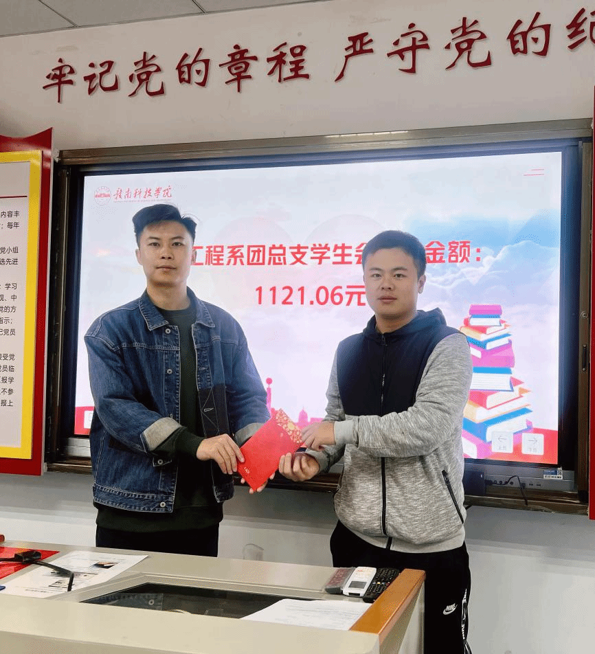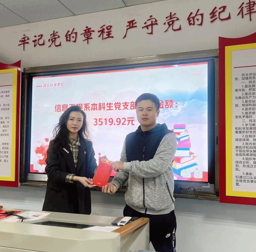 意气风发的青年不应拘泥于冰冷的床榻,心向阳光的少年应感受世界的美好。得知姜文彬同学的情况后,信息工程系党总支积极发出为姜文彬同学捐款的倡议,号召信息工程系全体教师、学生党员和学生干部发扬“团结友爱、互帮互助”的信息精神,伸出援助之手,奉献一片爱心,以实际行动践行新时代雷锋精神。师生积极响应号召,截至3月12日,共筹得善款8606.98元。仪式上,各老师代表将所筹集的善款现场转交给了雷初聪。