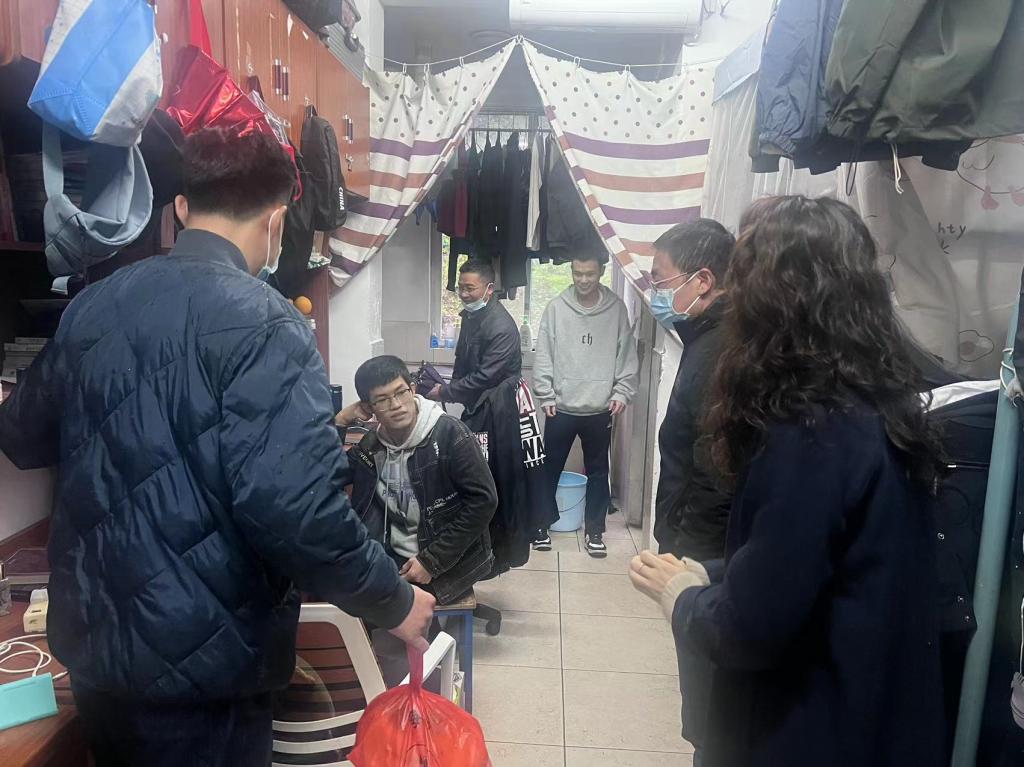 本网讯:11月30日,赣州天气骤冷,信息工程系党总支书记邓小鸿,学工副主任魏炳辉,辅导员陈世琪、吴宪一行到学生宿舍进行走访,关心慰问通信202班张恩来同学、计算机204班梁伟恒同学。