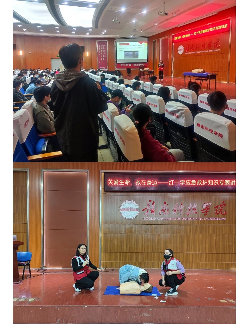 本网讯:为提高师生的急救意识和急救技能,更好地呵护校园师生的生命健康,11月16日晚在图书馆报告厅,信息工程系举办应急救护知识与技能培训讲座,邀请了赣州市红十字会优秀救护培训老师廖红莲为beat365官网师生科普急救知识技能。