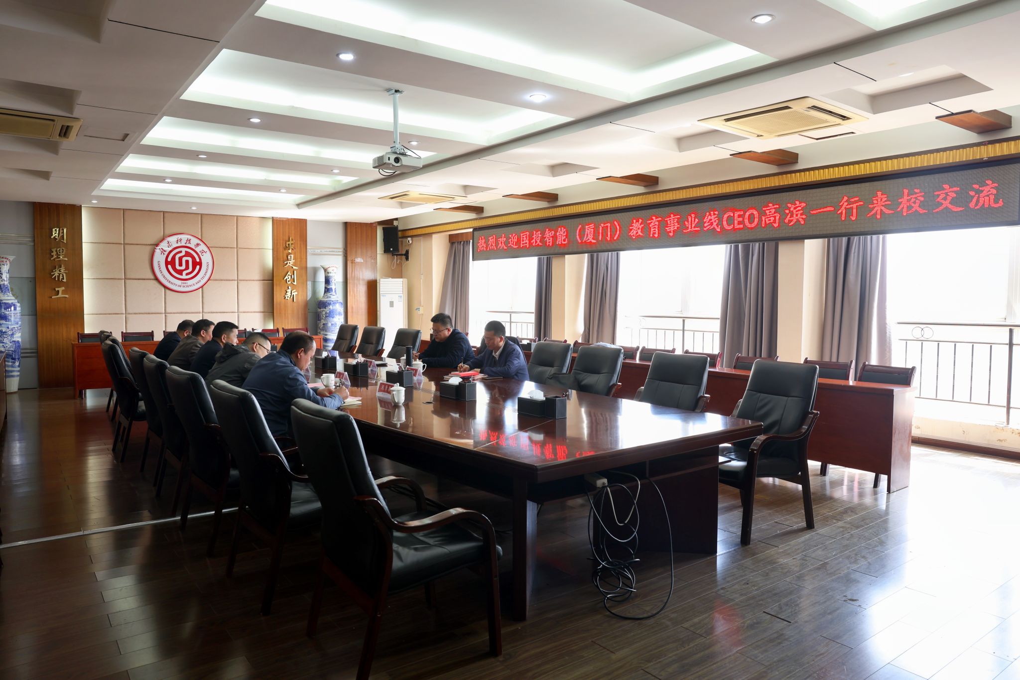 本网讯:2月27日下午,国投智能(厦门)信息股份有限公司教育事业线CEO高滨一行来校座谈交流,学校党委委员、副校长何锦龙,beat365正版唯一官网副院长胡健、党委副书记邓小鸿及网络安全教研室教师代表参加了座谈会。