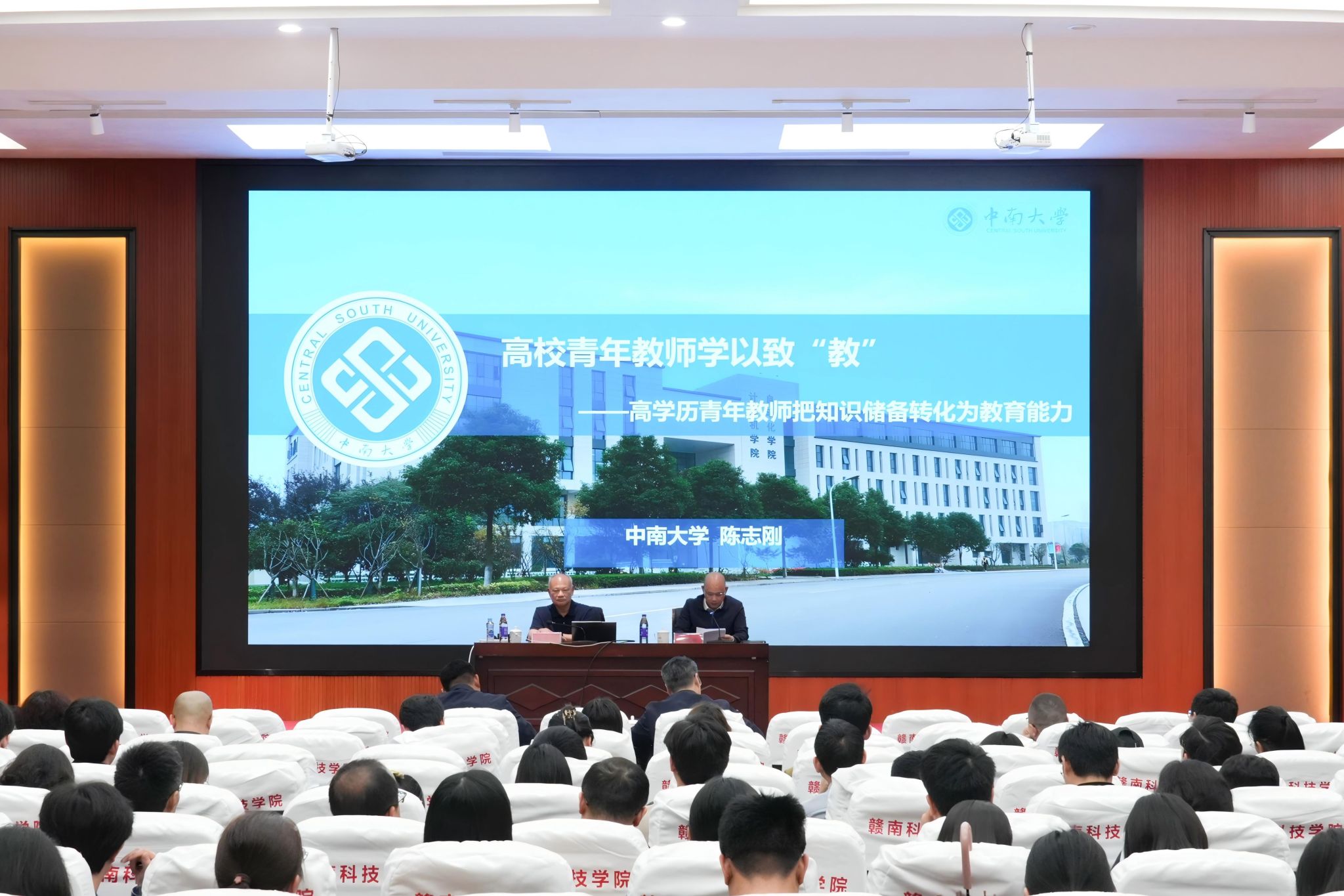 本网讯:4月25日,beat365官网在图书馆学术报告厅举办《高校青年教师学以致“教”》讲座,本次讲座由国家教学名师,国务院政府特殊津贴专家陈志刚教授主讲,学校党委书记邱建军,党委委员、组织人事部部长蓝晓植出席讲座,全校青年教师、辅导员到场聆听。