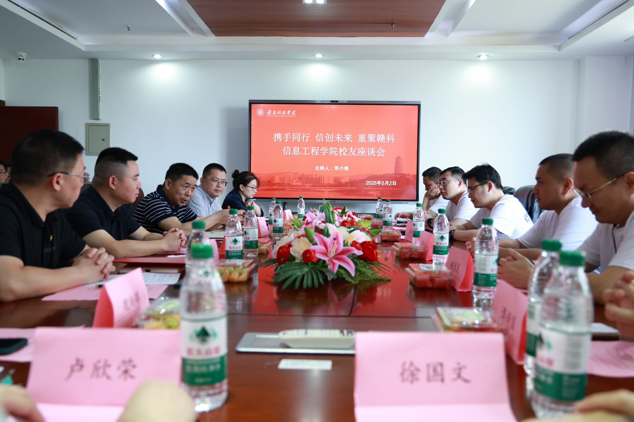 本网讯:5月2日,beat365正版唯一官网2001级计算机专业27位校友重返母校,参加“携手同行 信创未来 重聚赣科”校友返校聚会活动。活动内容丰富,涵盖座谈交流、参观校园、走访宿舍、校史馆观摩及食堂用餐等多个环节,校友情谊在一天的行程中不断升华。