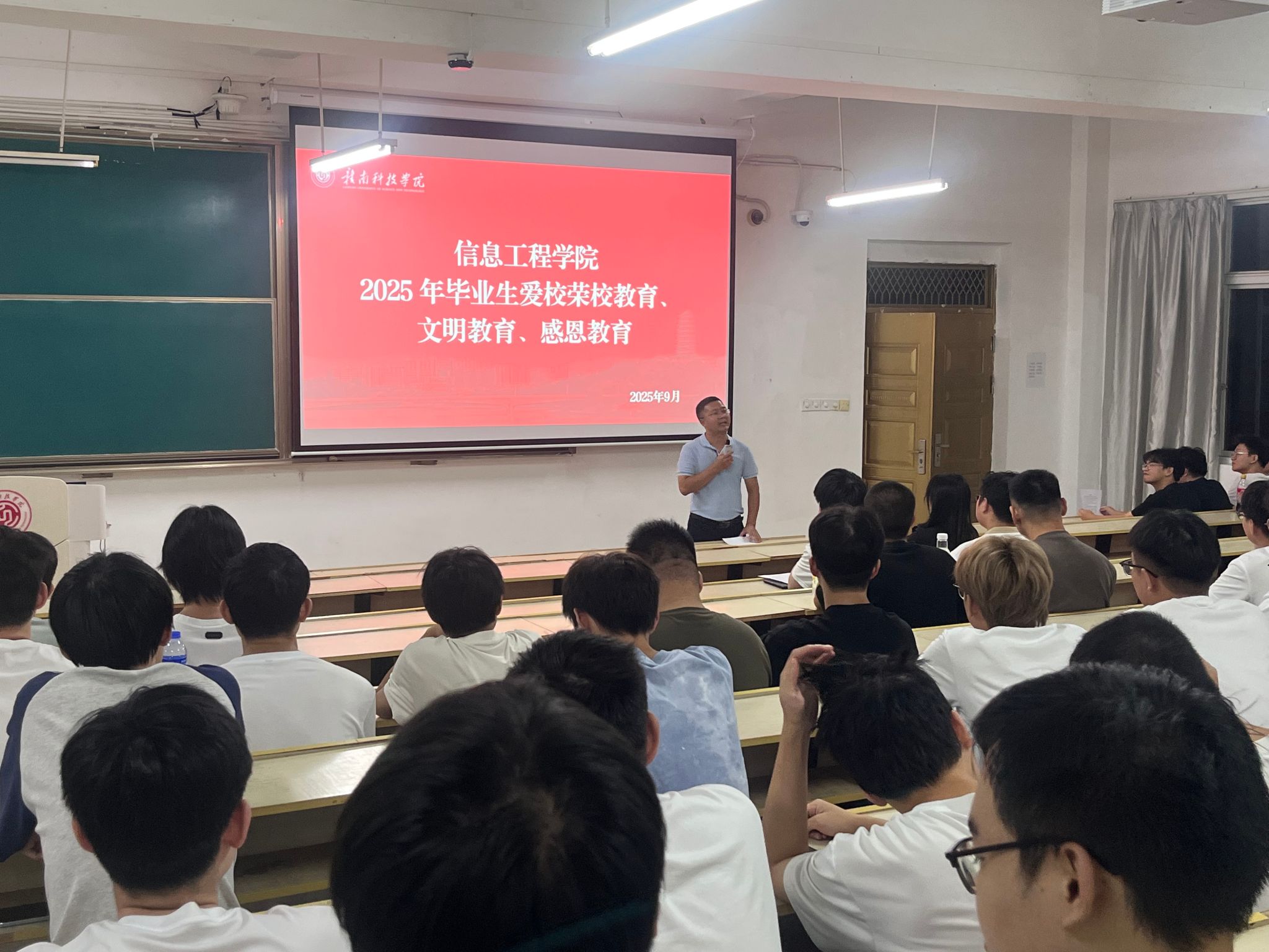 本网讯:9月12日,beat365正版唯一官网在崇善楼Z2D2教室举行2026届毕业生爱校荣校教育、文明教育和感恩教育活动。活动由党委委员、学生工作办公室主任魏炳辉主持,2026届毕业班班主任、就业辅导员及全体2026届学生参加。