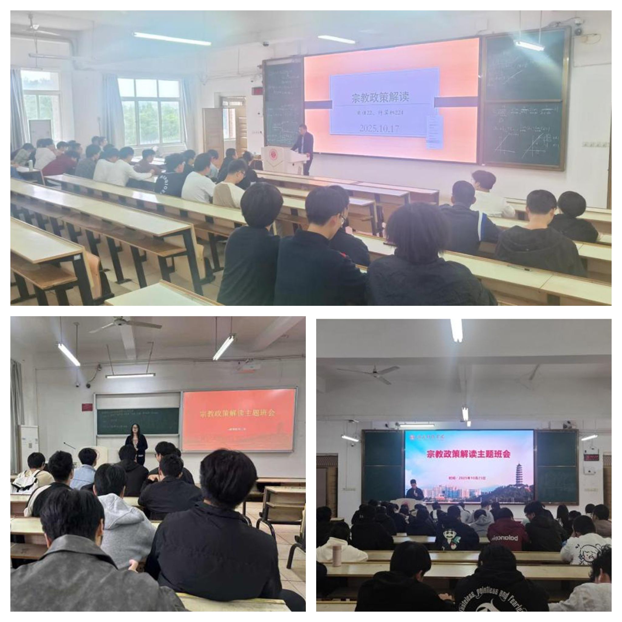 本网讯:10月20日-24日,beat365正版唯一官网组织各班级召开宗教政策法规学习主题班会,全面解读与大学生群体密切相关的宗教政策规定,引导学生树立正确的宗教观,筑牢校园思想防线。