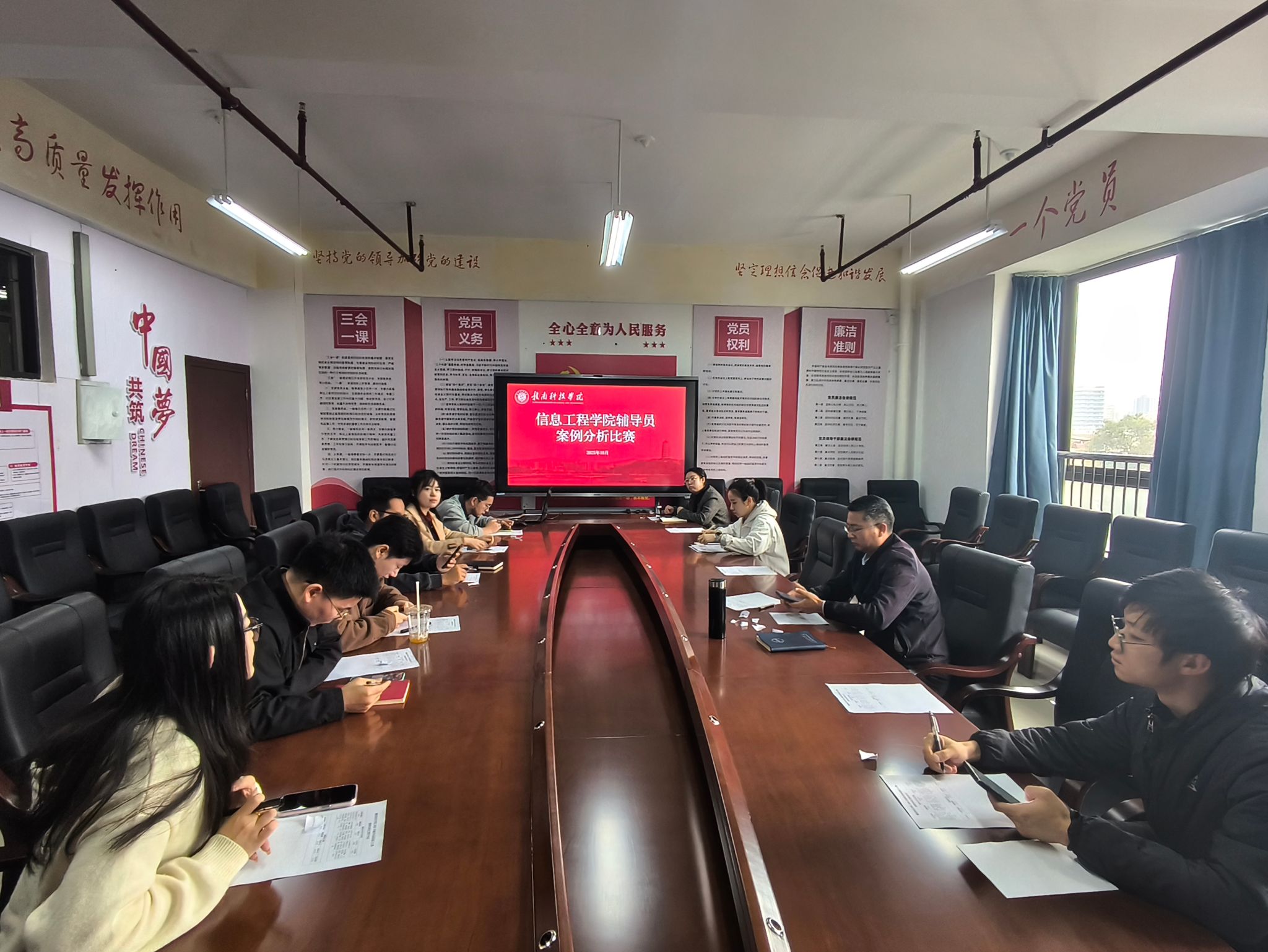 本网讯:为全面提升辅导员队伍的职业能力和专业素养,搭建交流学习与风采展示的平台,10月27日下午,beat365正版唯一官网在稀土大楼C509成功举办2025-2026学年辅导员案例分析比赛。本次比赛由学院党委委员、学工办主任魏炳辉主持,学院全体专职辅导员参与。