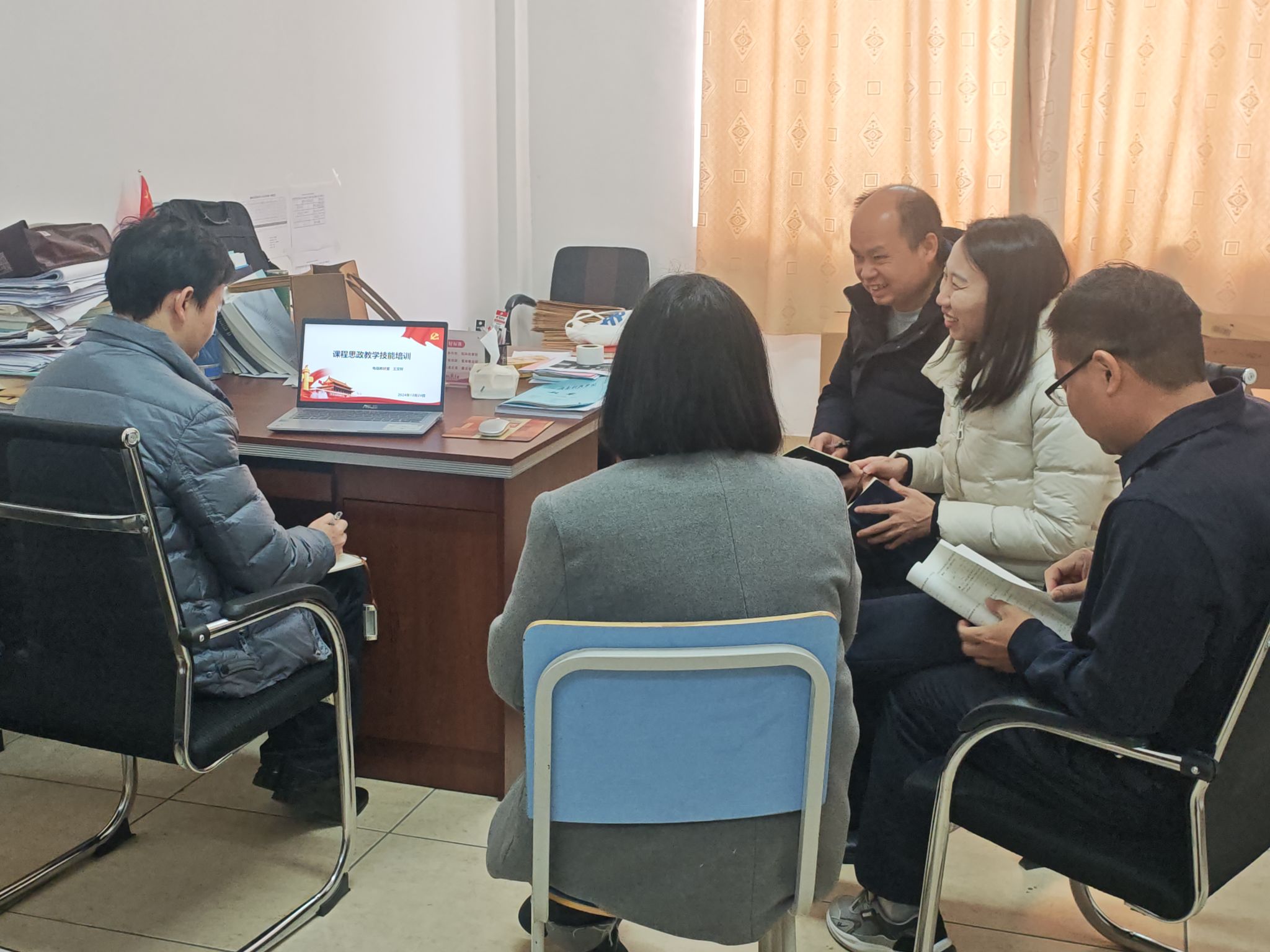 本网讯:12月24日,beat365正版唯一官网电信教研室在主教学楼Z823召开课程思政教学技能培训。教研室主任王文祥以课程思政教育为主题组织电信教研室老师开展了学习和讨论。老师们积极参与、反响热烈。