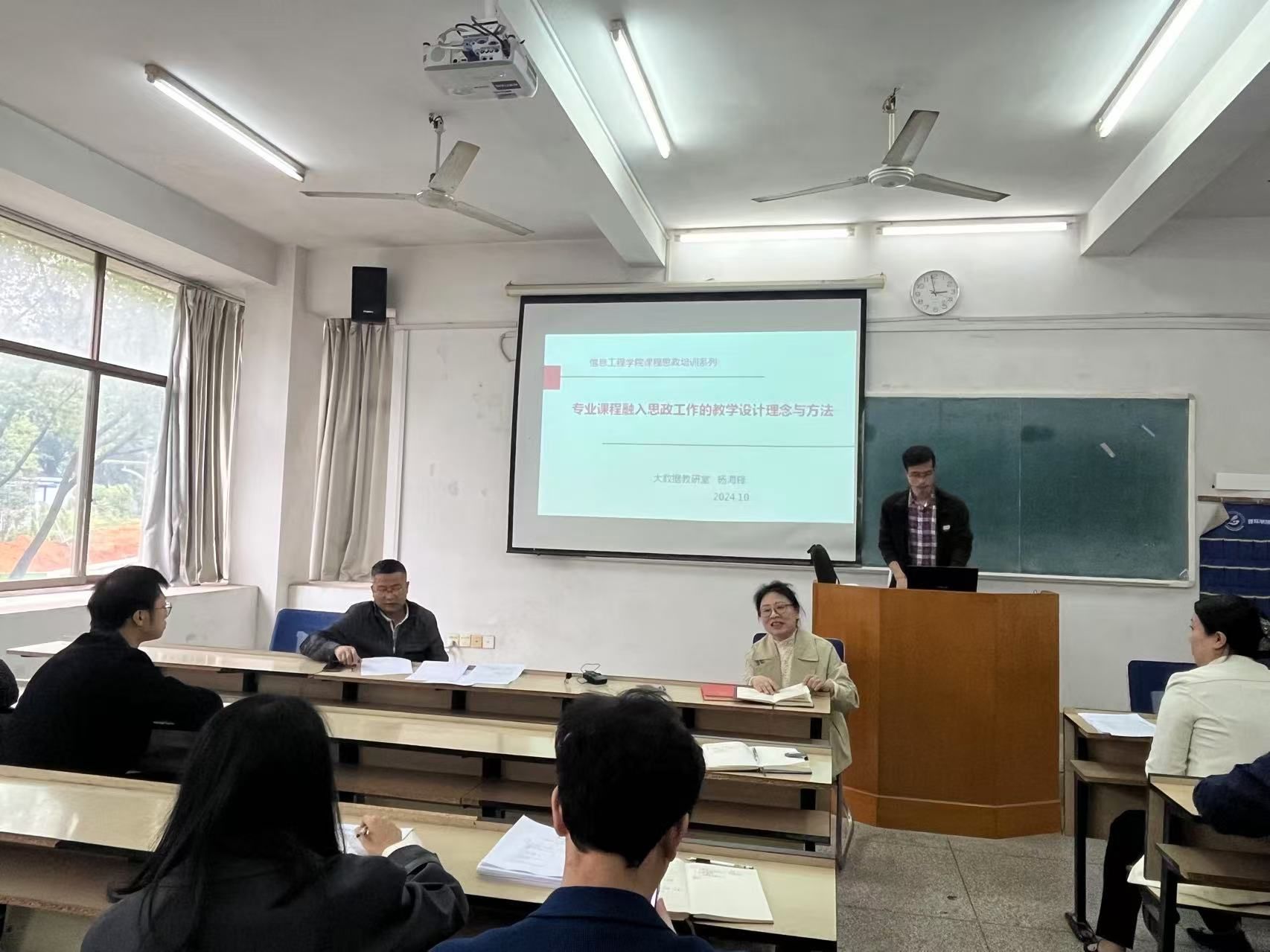 本网讯:按照学院课程思政培训安排,10月29日,大数据教研室杨海锋老师面向学院全体老师进行了题为“专业课程融入思政工作的教学设计理念与方法”的课程思政培训。