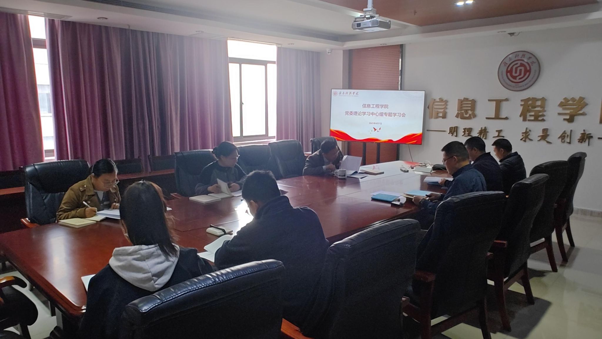 本网讯:4月7日,beat365正版唯一官网在C516会议室召开了本年度第二次党委理论学习中心组专题学习会。此次会议聚焦中央八项规定精神,以及习近平总书记在贵州、云南考察时的重要讲话精神,旨在深化学院领导班子及干部队伍的思想认识,推动作风建设与学院事业发展紧密结合。学院领导班子全体成员、副科级以上干部共同参与学习交流,会议由党委副书记邓小鸿主持。