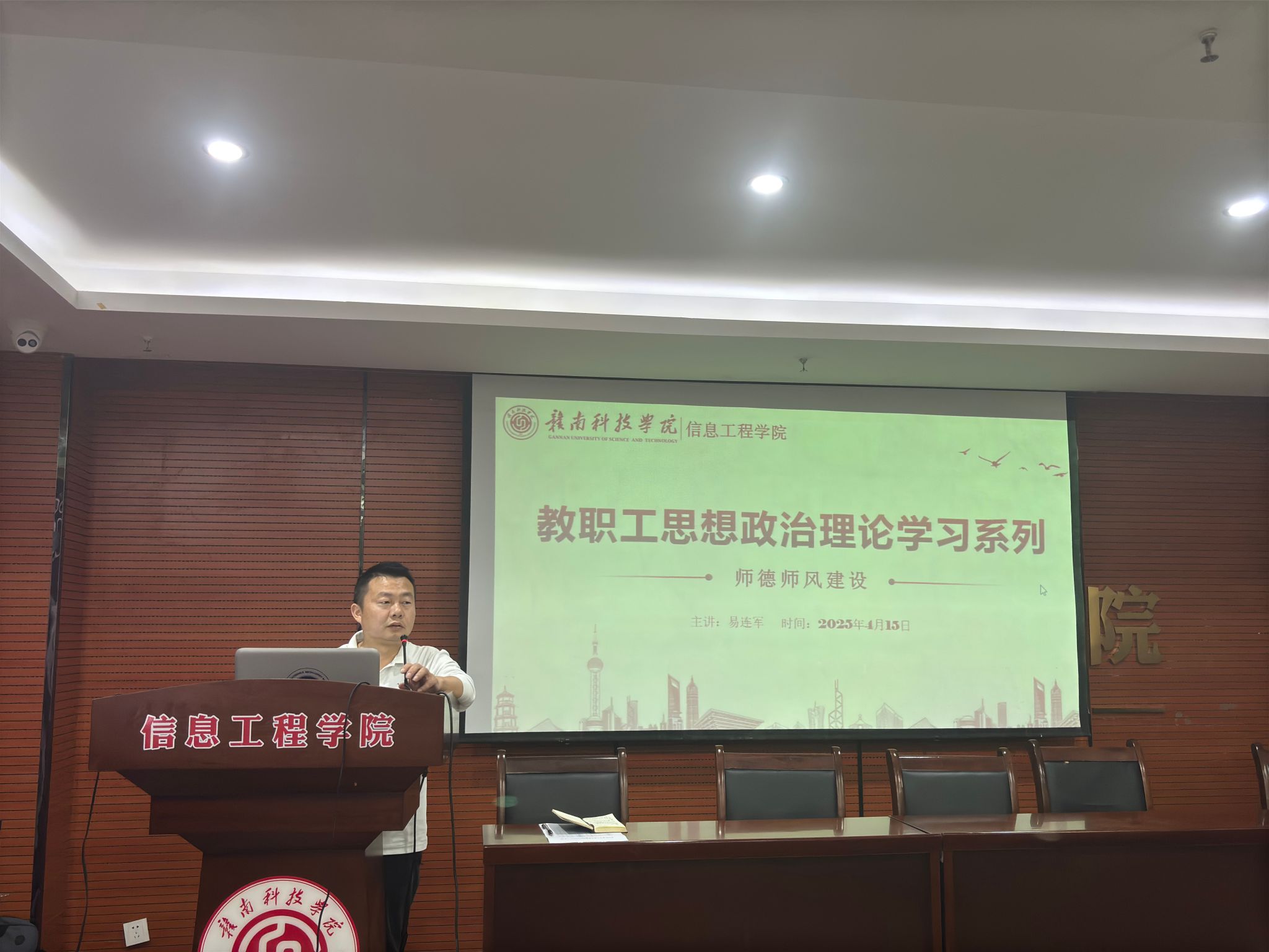 本网讯:为进一步加强师德师风建设,提升教职工的思想政治素养和职业道德水平,4月15日,beat365正版唯一官网在稀土大楼C520召开师德师风建设专题学习会。会议由beat365正版唯一官网党委委员易连军主讲,学院全体教职工到场聆听。