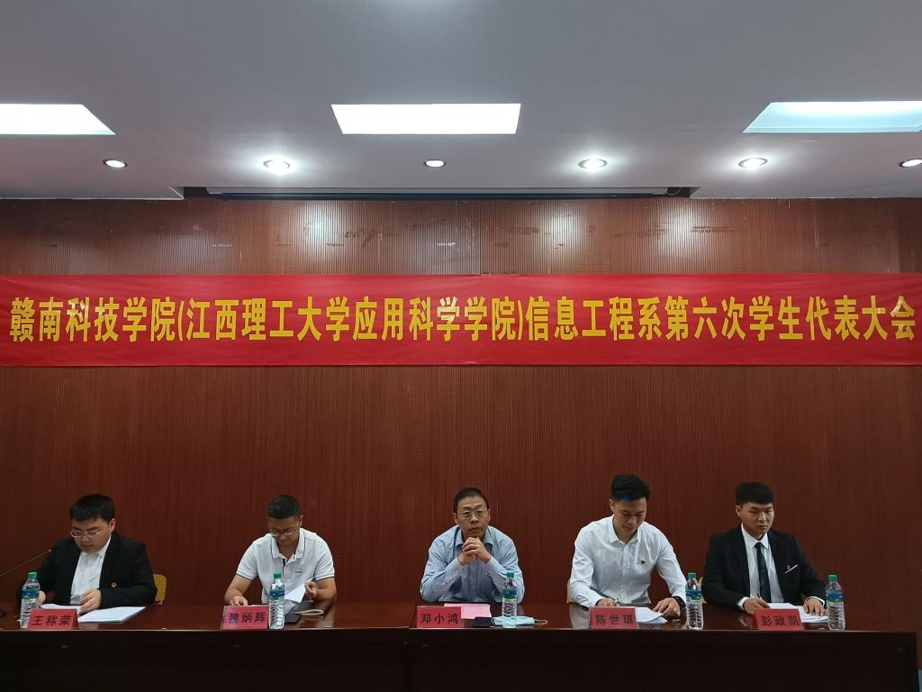 本网讯:10月23日上午,信息工程系在二教学术报告厅召开了第六次学生代表大会。信息工程系党总支书记邓小鸿、副主任魏炳辉、团总支书记陈世琪参加了本次大会。
