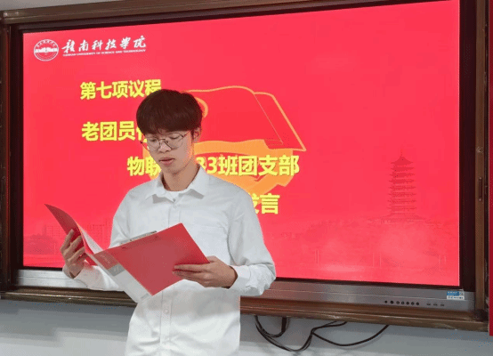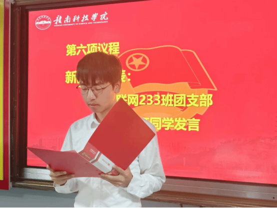 物联网233班团支部王福旺代表新团员发言,他表示,将以入团作为新的起点,努力学习,积极进取,时刻牢记自己的团员身份,在学习和生活中发挥模范带头作用,用实际行动践行入团宣言。