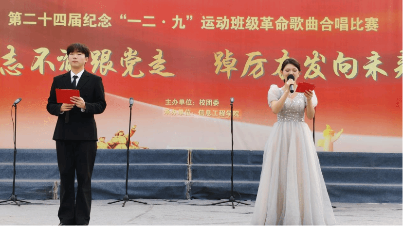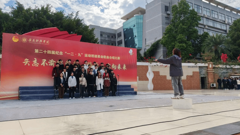 本网讯:为纪念“一二·九”运动90周年,传承爱国精神,凝聚青春力量,11月23日,beat365正版唯一官网第二十四届“一二·九”革命歌曲大合唱比赛在学校冶金广场隆重举行。全院25个老生班级、13个新生班级齐聚一堂,用嘹亮歌声重温峥嵘岁月,以青春旋律抒发报国情怀。