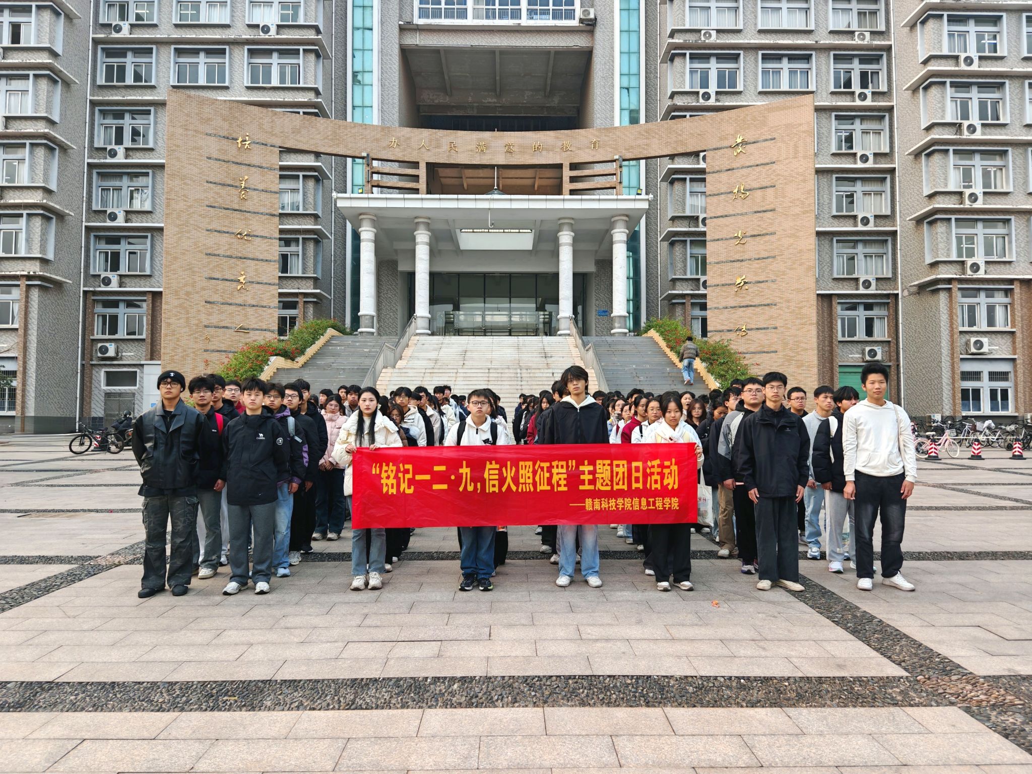 仪式最后,全体师生齐声合唱《没有共产党就没有新中国》。嘹亮的歌声回荡在校园上空,激昂的旋律凝聚起奋进新征程的磅礴力量,表达了青年学子听党话、跟党走的坚定决心。