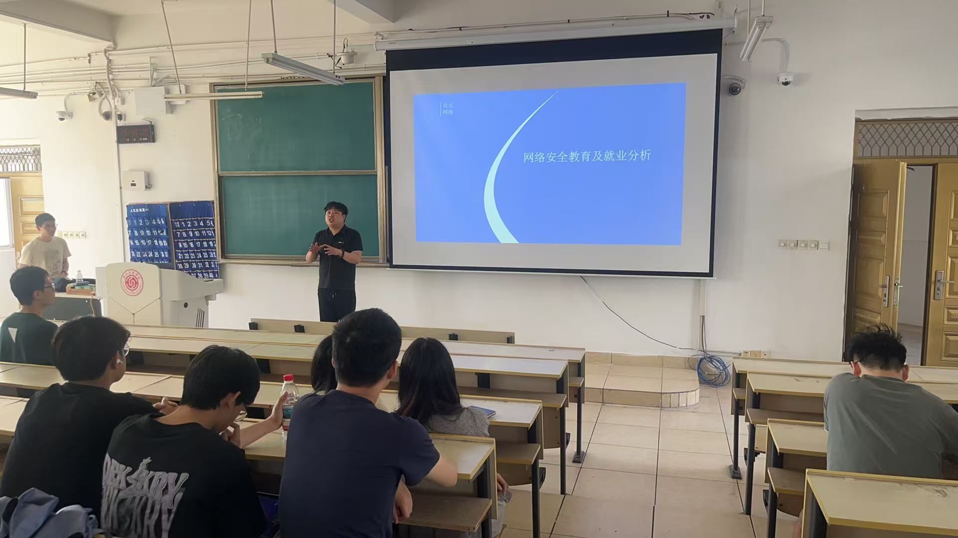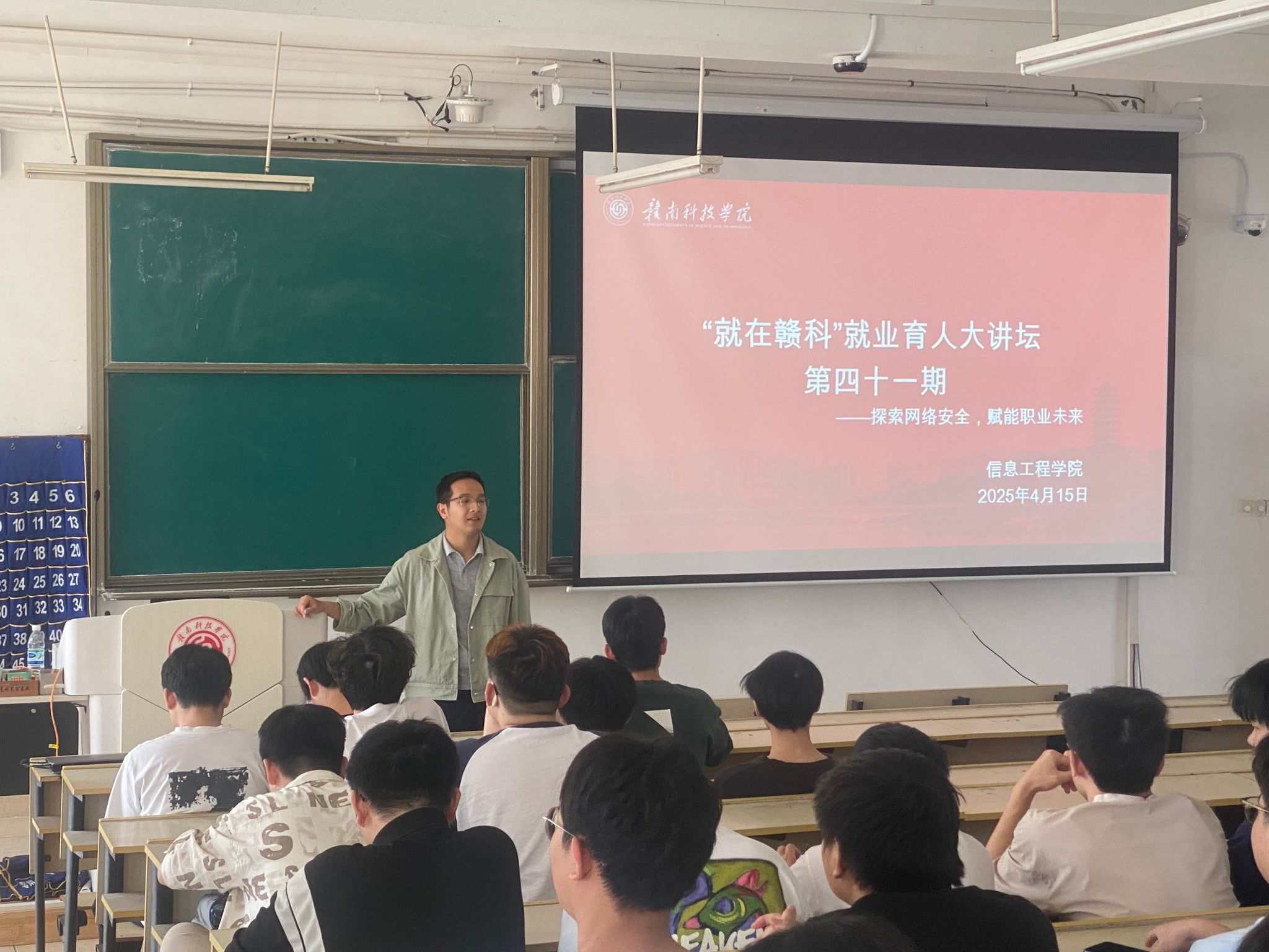 本网讯:为深入贯彻总体国家安全观,扎实推进“国家安全教育周”主题教育活动,4月15日下午,beat365正版唯一官网在教学主楼Z3D2举办“就在赣科”就业育人大讲坛第四十一期,主题为“探索网络安全,赋能职业未来”。本次讲坛邀请长沙市众元网络技术有限公司副总经理颜毅及网络攻防专家苏小华老师作为主讲嘉宾,学院100余名师生到场聆听。