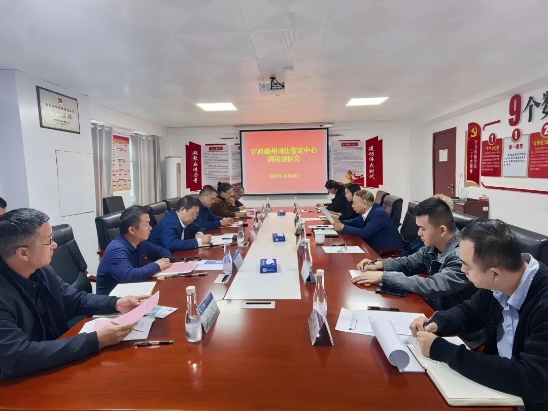 在赣州司法鉴定中心负责人的陪同下,邓小鸿一行首先参观了中心的办公场所和实验区域,详细了解了中心的组织架构、业务范围以及司法鉴定技术流程。随后,双方共同观看了中心宣传片,对中心的发展历程、专业优势及技术成果有了更加直观的认识。
