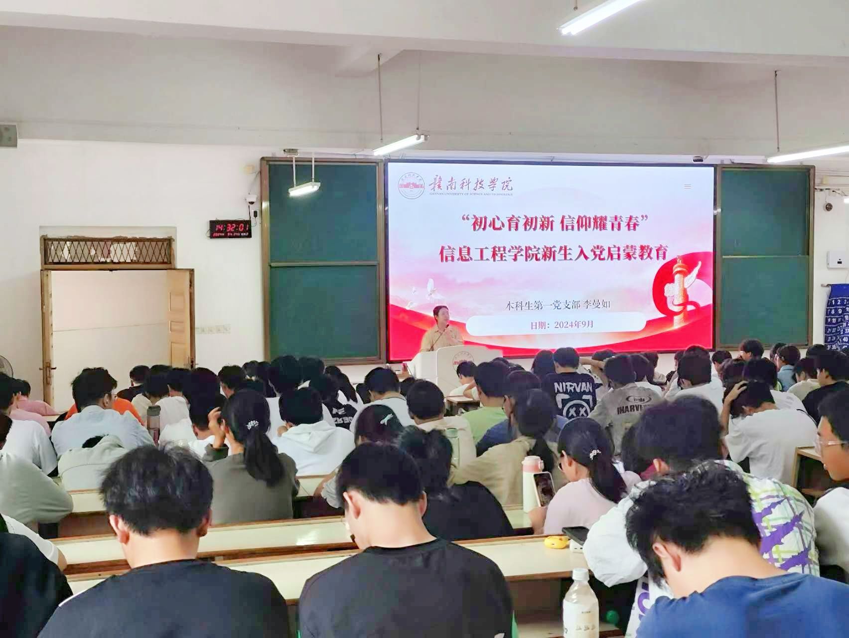 本网讯:为提高新生对党的认识,帮助新生树立知党、信党、入党的理念,引导新生积极向党组织靠拢,9月24日下午,beat365正版唯一官网在崇善楼Z1D3、Z1D4教室开展新生入党启蒙教育,本次启蒙教育主讲人为beat365正版唯一官网本科生第一党支部书记李曼如,beat365正版唯一官网党建组织员、本科生第二党支部书记李叶青。