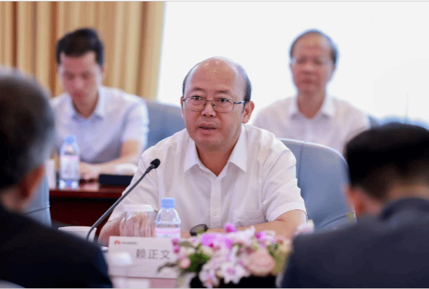 赖正文副市长代表赣州市人民政府在会上讲话。他说,赣州是党中央和习近平总书记特别关心的地方,政治生态好、自然环境好、高校资源密集、头部企业非常看好;这次政校企合作共建电子信息产业学院和数字经济领域公共实训基地意义重大,是落实国家战略部署的重要举措、是华为支持赣南等原中央苏区振兴发展担当作为的重要体现、是共同推动数字经济发展的重大课题;他表示,赣州市人民政府会全力支持三方合作,希望三方聚集资源优势,以“政府推动、市场认可、互惠互利、合作共赢”为基本原则,以数字经济领域作为合作重点,逐步深入开展全方位合作,细化建设方案,紧密对接,加速落地,高质量推进,打造行业一流、全国典范的合作样板。