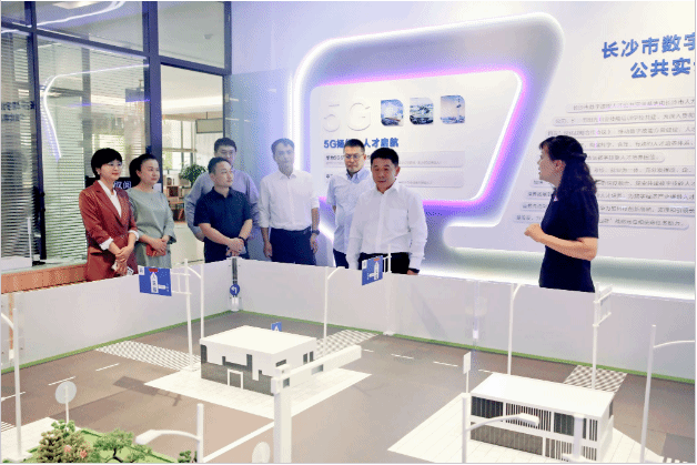在长沙市数字技能人才公共实训基地校长赖施颖、华为技术有限公司企业培训认证部南区总监李丹的陪同下,何锦龙一行实地考察了长沙市数字技能人才公共实训基地的展厅、实训室及教学场地等。