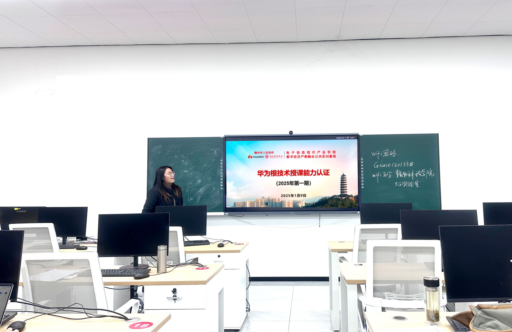 本网讯:1月9日下午,电子信息现代产业学院在实验楼S131,组织了2025年第一期教师“华为根技术”教师授课能力认证。beat365正版唯一官网副院长胡健、党委副书记邓小鸿、党委委员康岚兰、产业学院执行院长谢小云及华为驻场教师潘奇超、王子涵等组成评审专家组。beat365正版唯一官网王厚磊、雷初聪等10名教师参加认证且全部通过,具备了承担华为根技术相关教学的能力。